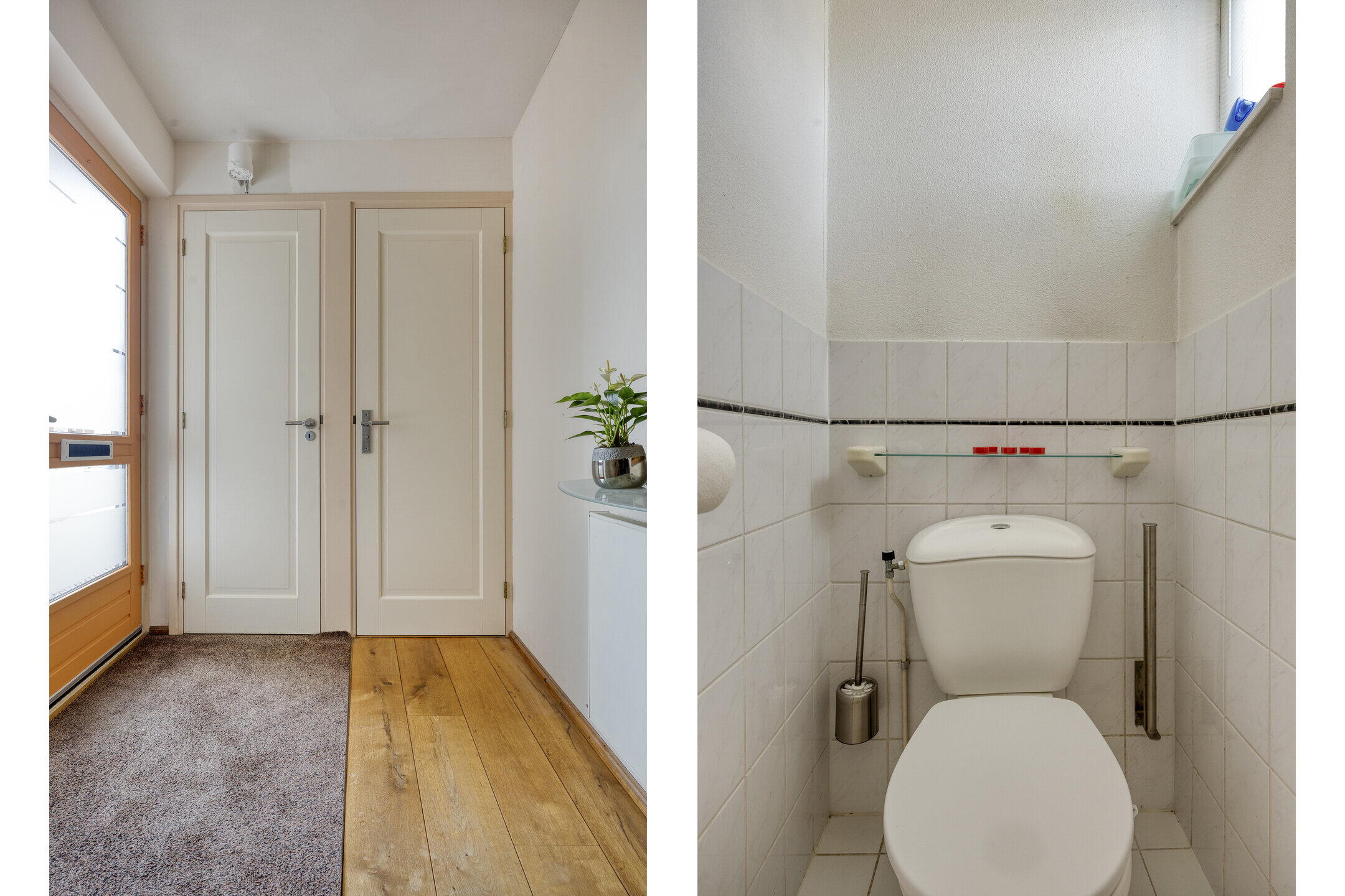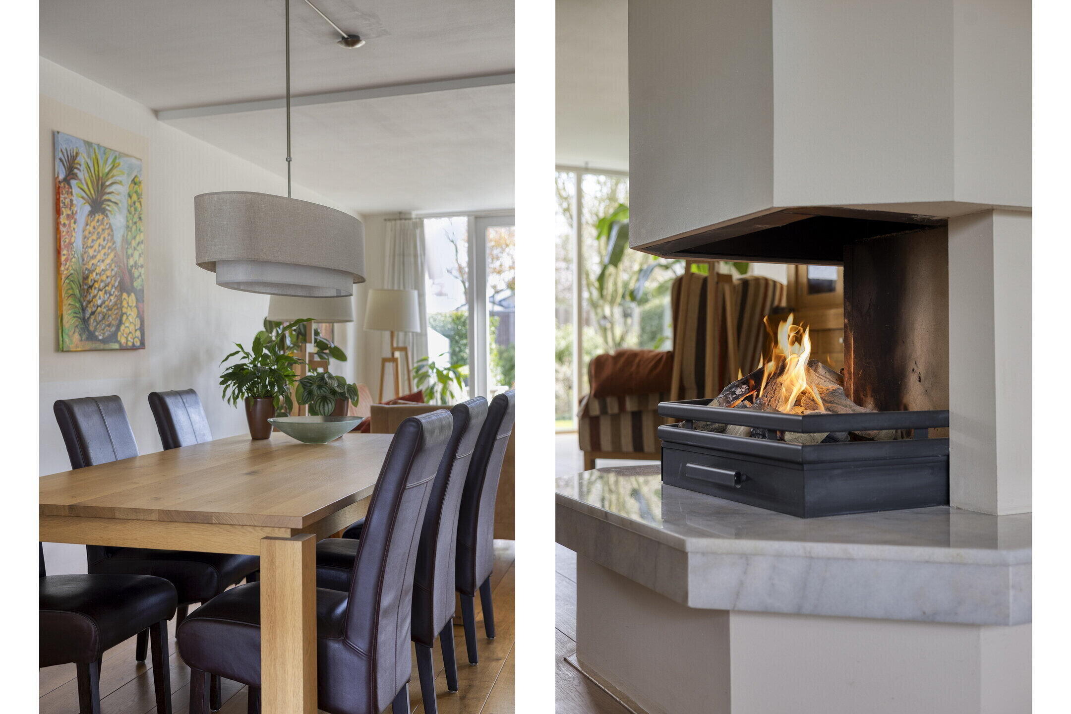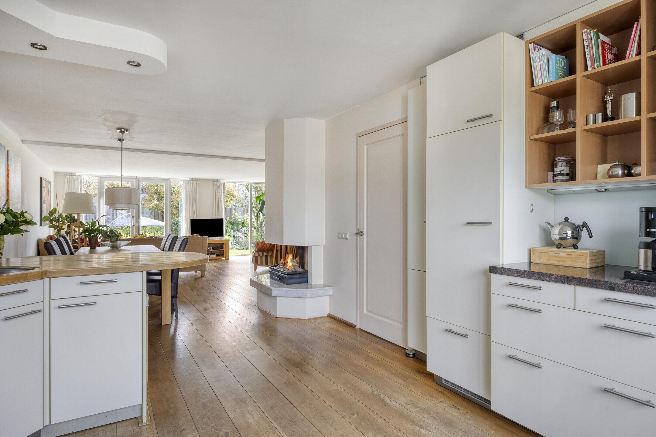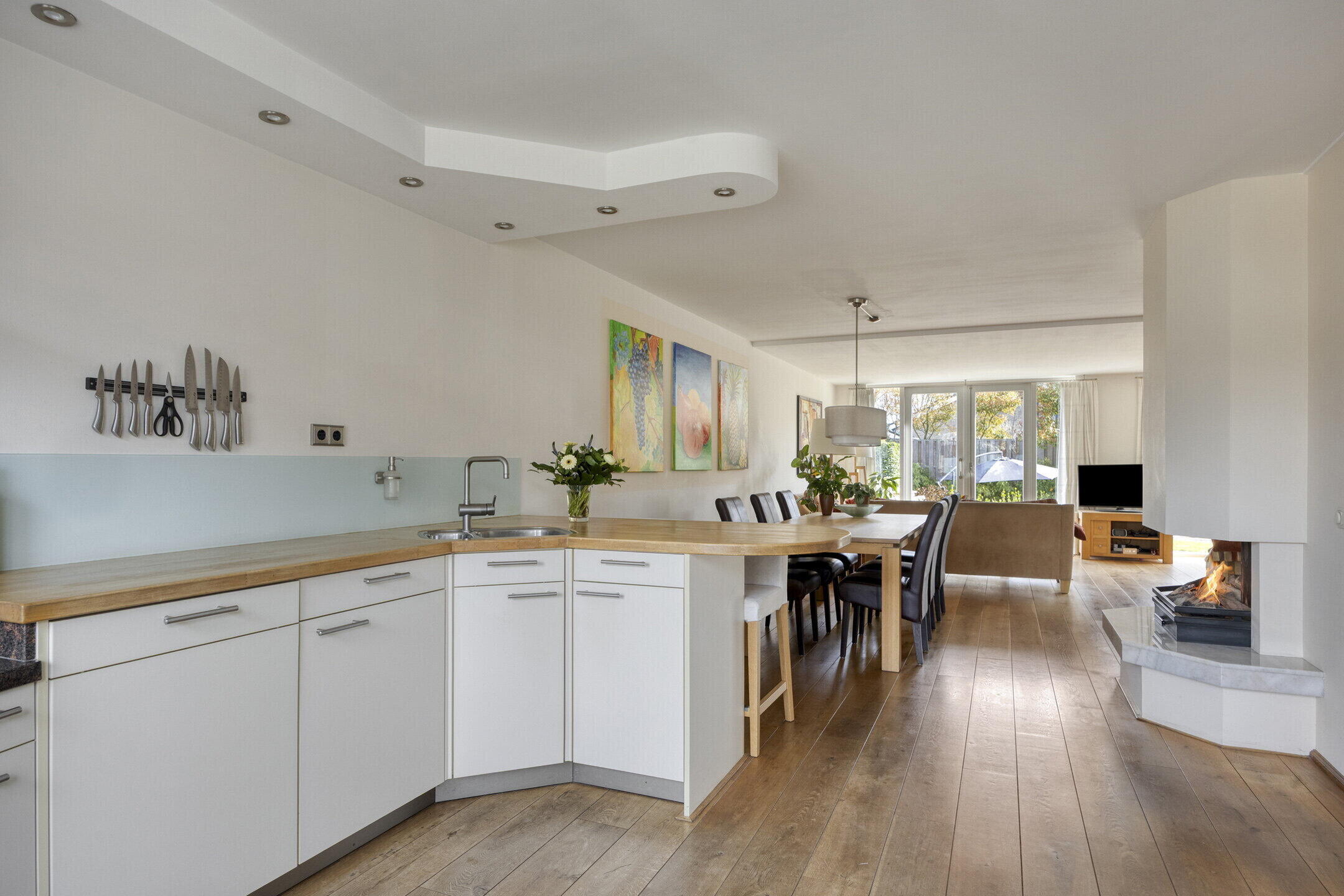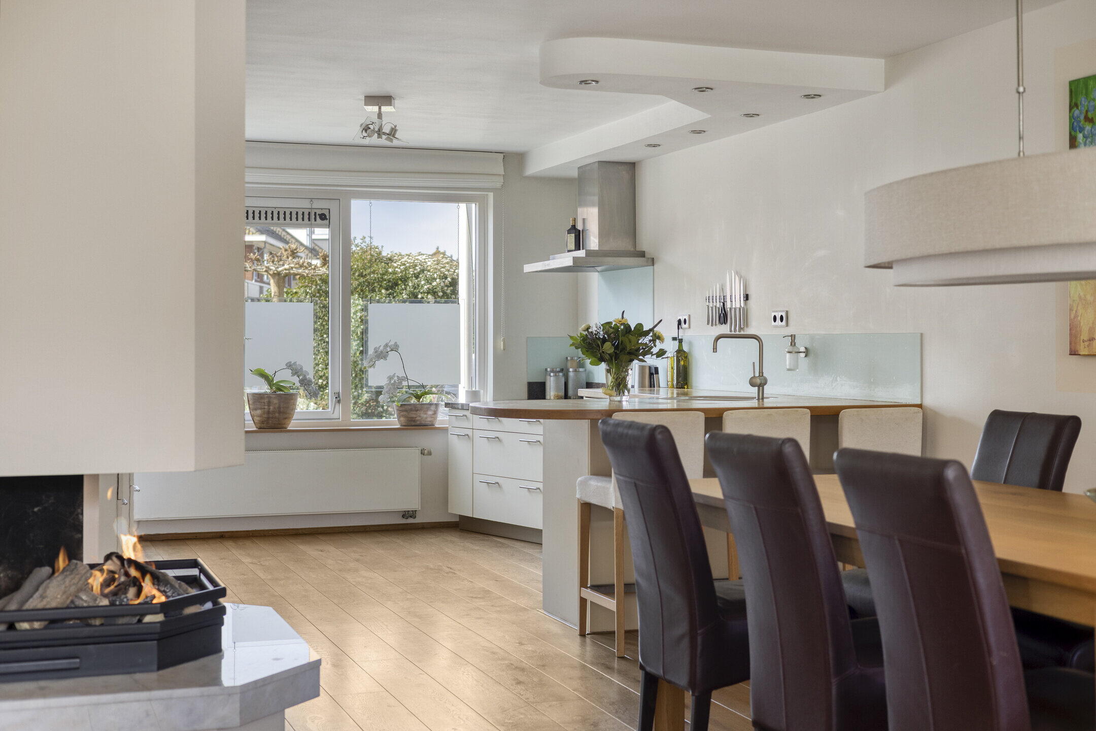 U betreedt de woning via een ruime entree met meterkast, toilet en trapopgang. Vervolgens komt u in de indrukwekkend ruime en lichte woonkamer. Dankzij de grote raampartijen en openslaande deuren naar de tuin geniet u hier van een prachtige lichtinval en een fijne verbinding met buiten. De sfeervolle gashaard maakt het geheel compleet.