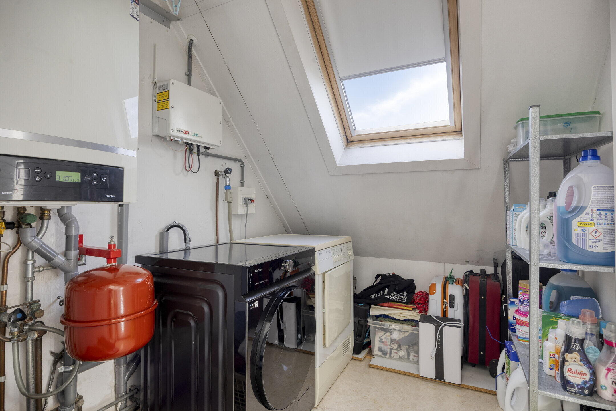 Hier vindt u een ruime overloop met een aparte berging voor o.a. wasmachine-droger en de opstelplaats voor de cv-ketel. Daarnaast is er een volwaardige vijfde slaapkamer, ideaal als werk-, hobby- of logeerkamer.